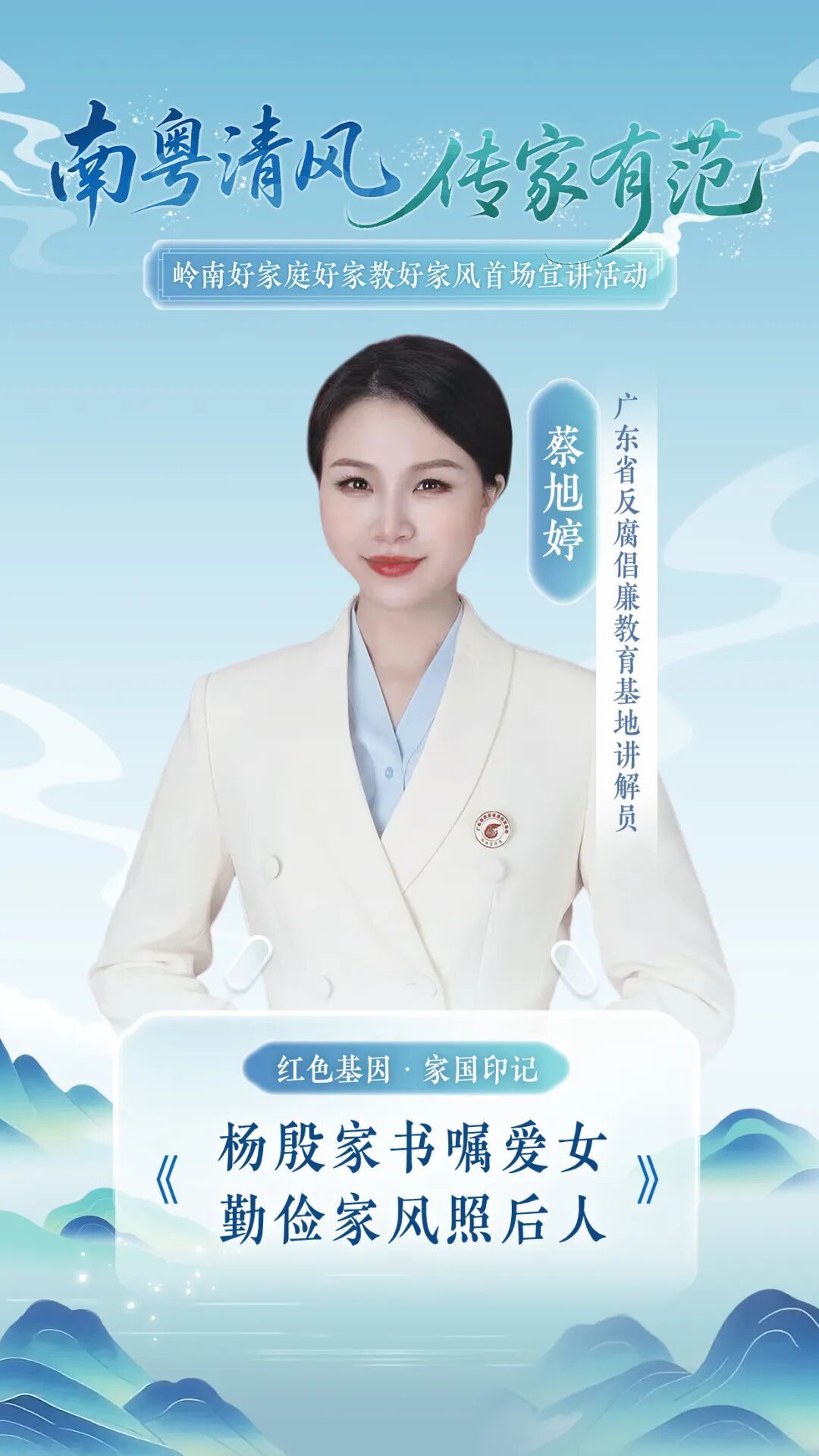 为深入学习贯彻习近平总书记关于注重家庭家教家风建设的重要论述,落实《关于加强新时代廉洁文化建设的意见》,10月12日,由广东省纪委监委、省委宣传部、省妇联联合主办,省文明办、省纪委监委驻省委宣传部纪检监察组共同策划,羊城晚报报业集团、广州市委宣传部(广州市文明办)承办的“南粤清风 传家有范”2025年岭南好家庭好家教好家风巡回宣讲首场活动在广东粤剧院举行。