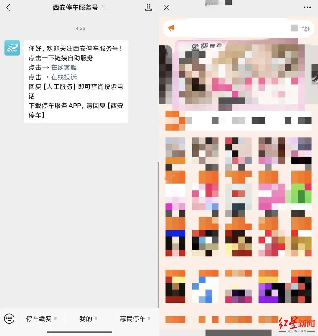 “西安停车服务号”被非法劫持,多页面跳转黄色网站,原账号主体公司已注销