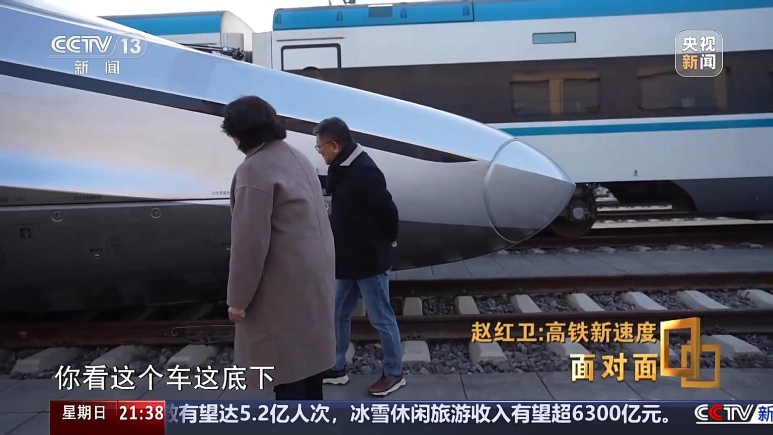 赵红卫:轻量化它是能够带来很多的好处。第一个,轻量化以后,它对于轨道的冲击,轮轨作用力会减小,对轨道的冲击会减小,就可以在既有的时速350公里的路况条件下能够开行时速400公里。