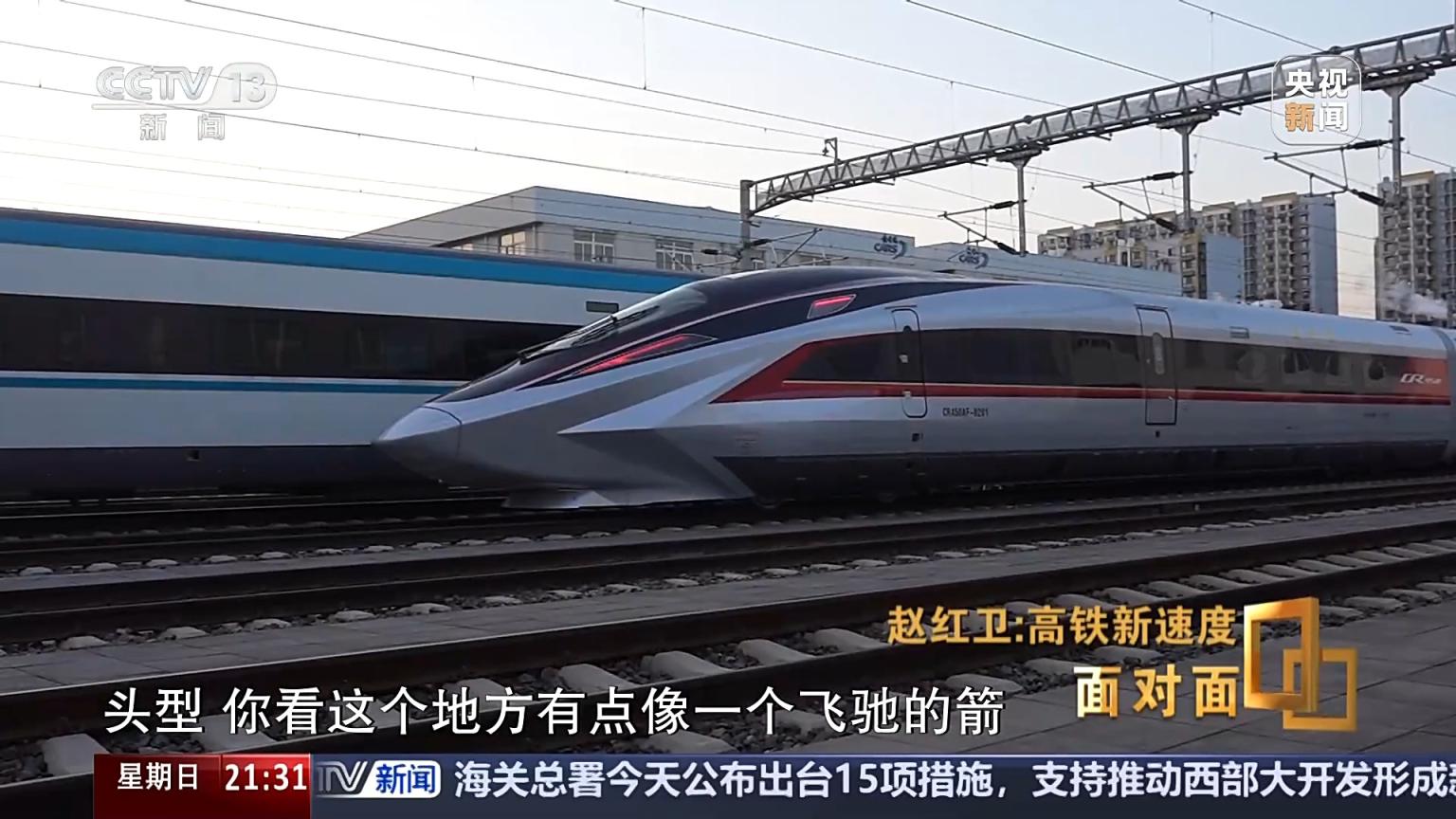 赵红卫:对,这个是CR450动车组AF平台,这是CR450BF平台,它这个头型你看这个地方有点像一个飞驰的箭,所以它有飞箭的感觉。